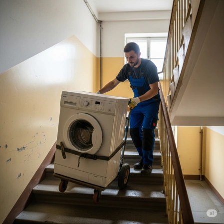 Профессиональная переноска: Вам не придётся беспокоиться о том, как спустить или поднять тяжёлую машину. Для доставки прямо на место, в том числе в многоэтажных домах без лифта, мы используем специальные тележки, обеспечивающие безопасную транспортировку по лестницам.
